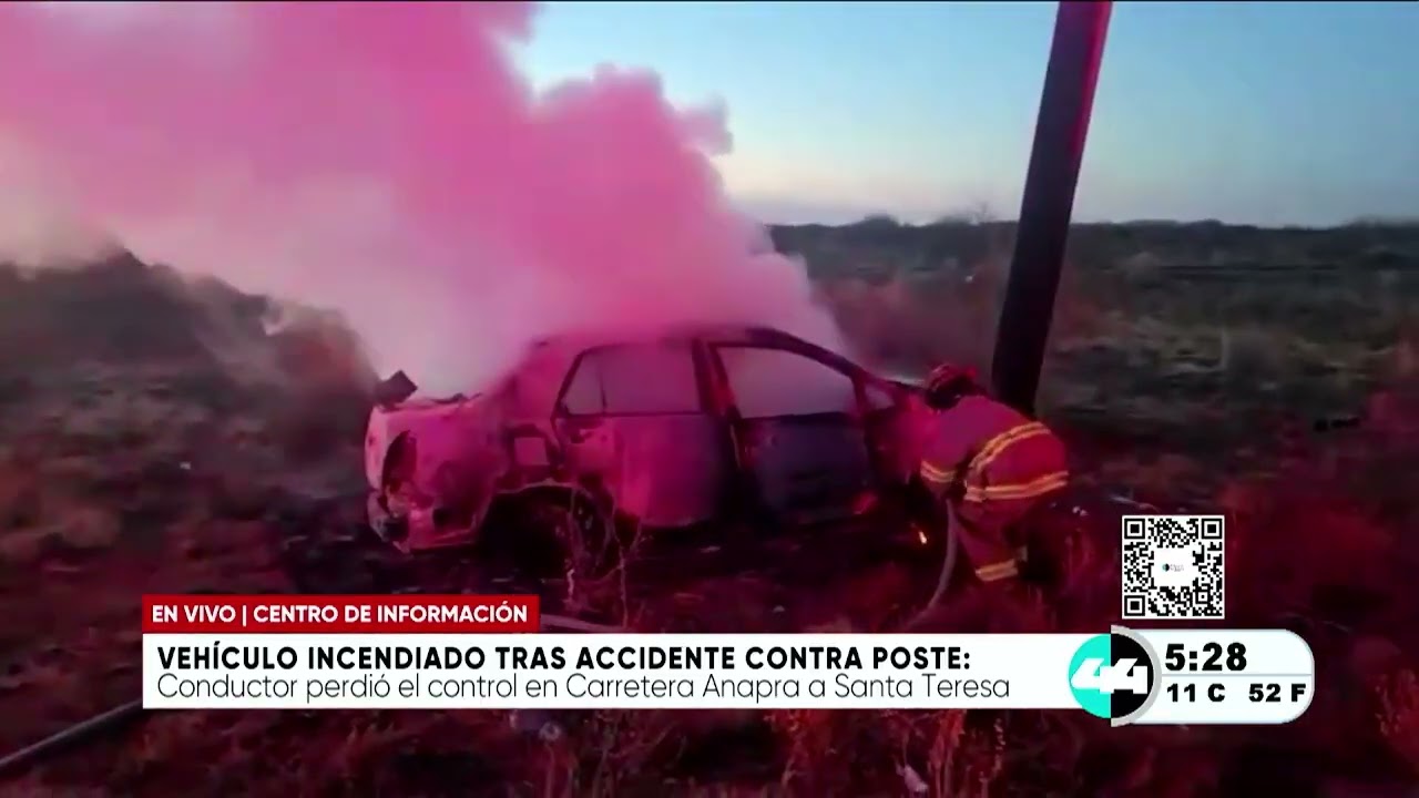 Vehículo incendiado tras accidente contra poste