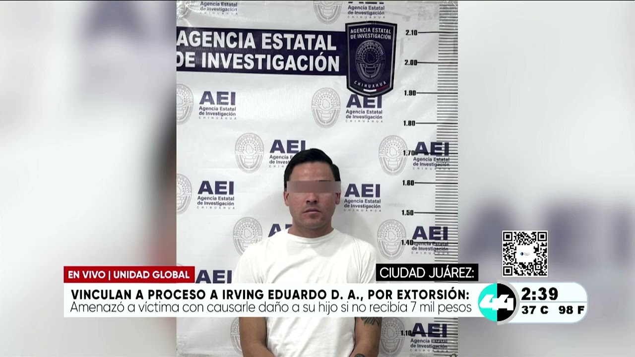 Ciudad Juárez, Chih.- Un hombre identificado como Irving Eduardo D. A. fue vinculado a proceso tras ser acusado del delito de extorsión agravada. Según las autoridades, el acusado intentó cobrar la cantidad de 7,000 pesos a su víctima a cambio de no causarle daño a su hijo. Los hechos iniciales se remontan al pasado 6 de noviembre de 2025, cuando el imputado habría recibido dicha cantidad bajo amenazas.