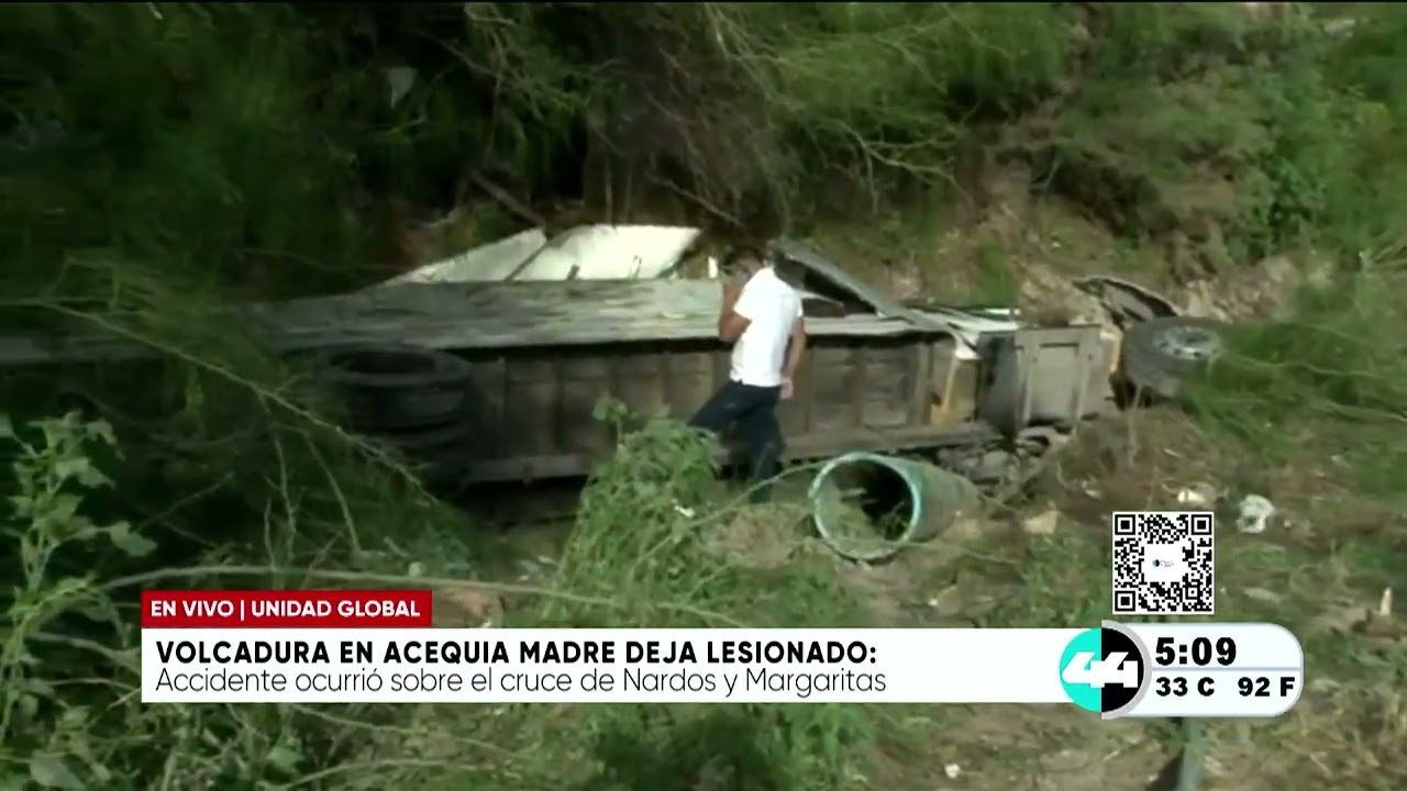 Volcadura en acequia madre deja lesionado
