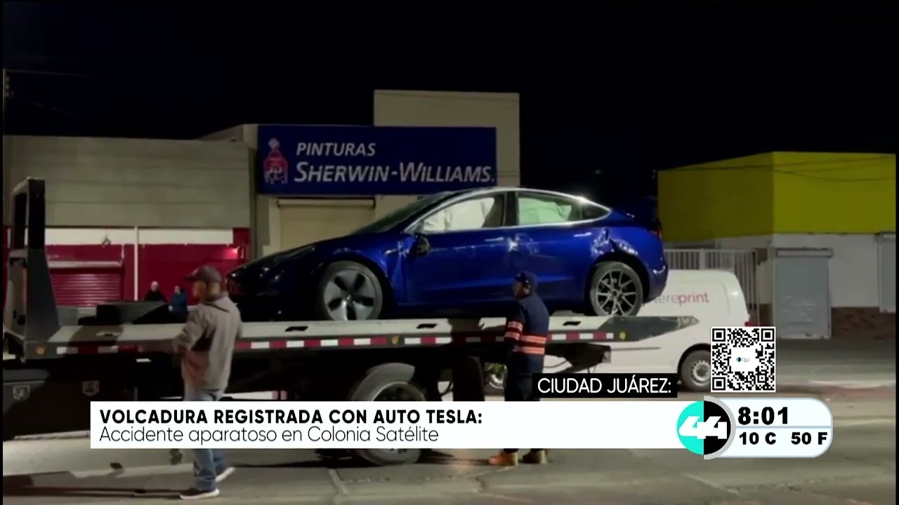 Volcadura registrada con auto Tesla