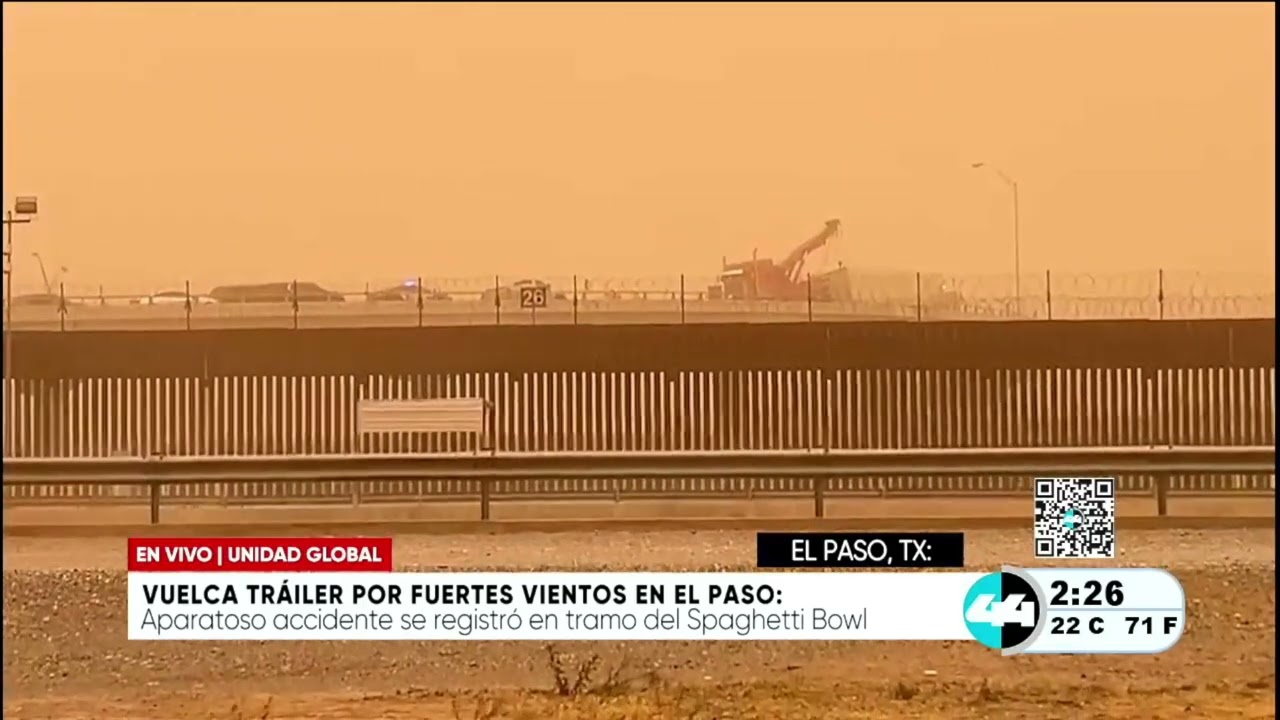 Vuelca trailer por fuertes vientos en El Paso
